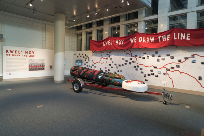 Kwel’ Hoy: We Draw the Line is a cross-country tour, traveling museum exhibition, and series of public programs uplifting Indigenous leadership in struggles to protect water, land, and our collective future.
