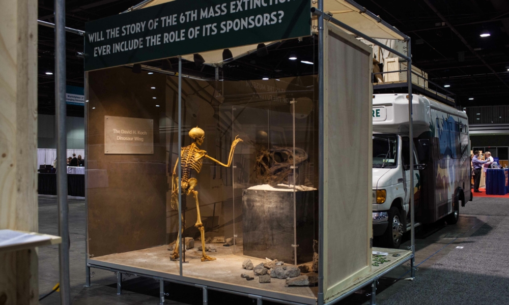 We started with a wager: instead of challenging museums to take climate action from the outside, it would be more effective to engage them as a “peer institution.” And so we masqueraded as a museum, building everything from a website (imagine our excitement when TheNaturalHistoryMuseum.org was available!), to a mobile museum vehicle that provided a platform from which to launch our first campaigns. We recruited dozens of the world’s top scientists and Nobel laureates to call on museums to cut all ties to fossil fuels, end oil and gas sponsorship and remove climate deniers from their boards.Â