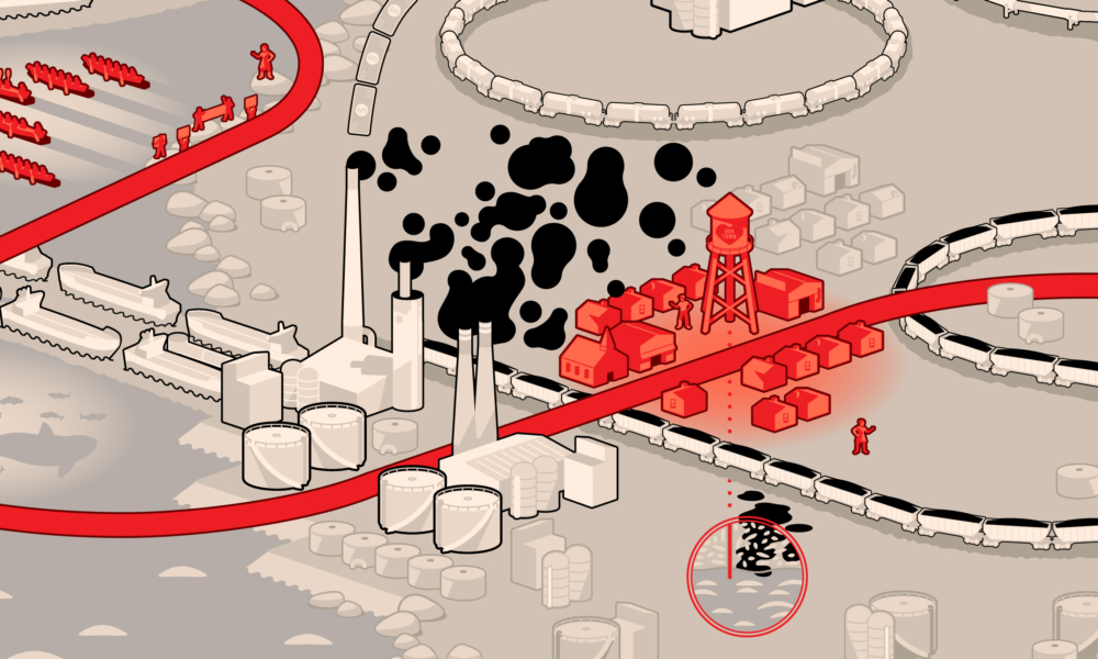 We depicted dinosaurs and dioramas with the same illustration style as drilling rigs, rising sea levels, and oil company execs. Our imagery reflected the environmental realities of the climate crisis, called out its sponsors, and represented the violence of extraction and environmental injustice on marginalized communities, as well as the spirit of resistance it has inspired.Â