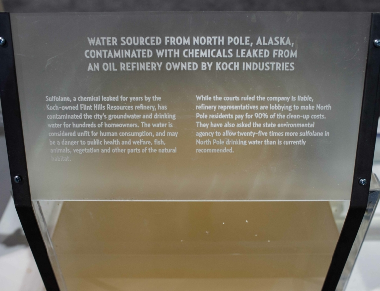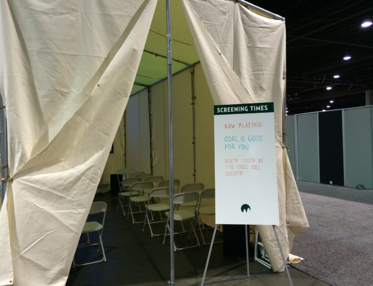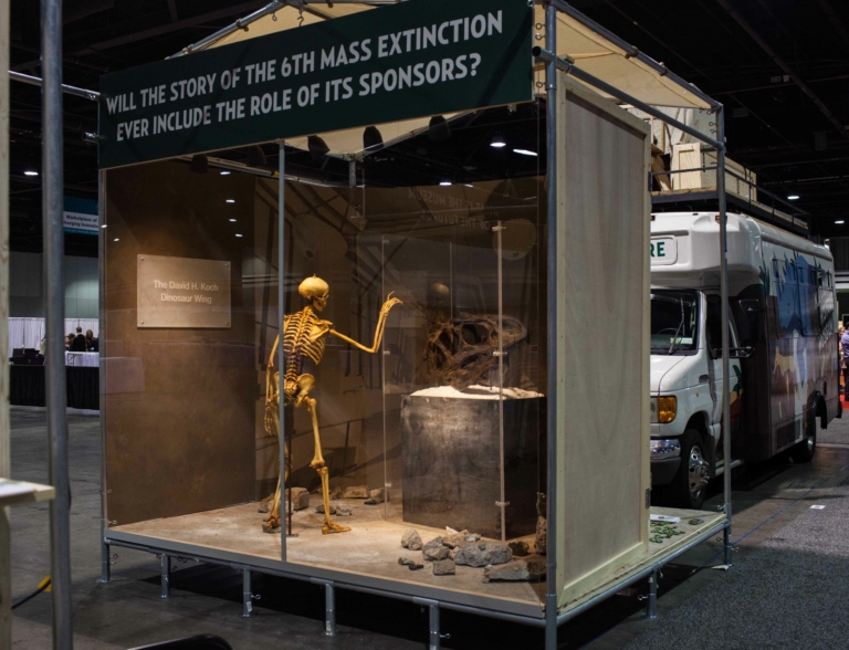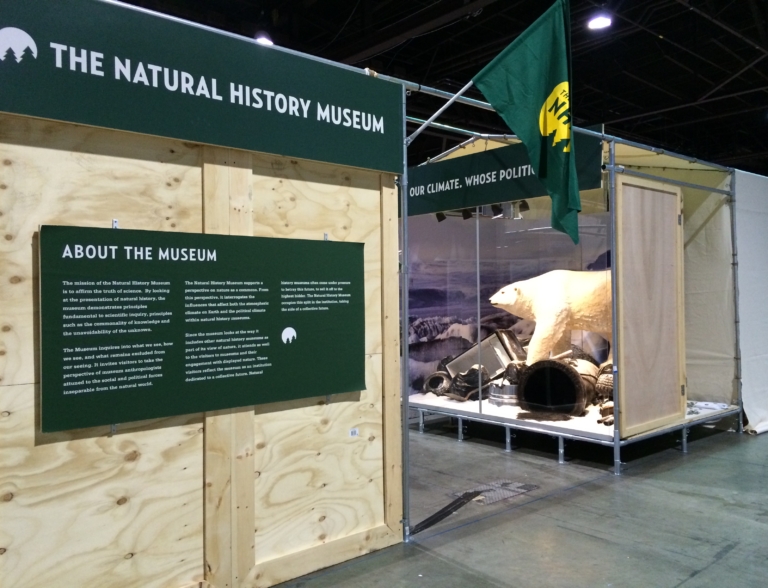 At the AAM convention we turned our anthropological gaze on traditional science museums as ideological habitats within this ecosystem. We re-created installations from NY’s American Museum of Natural History, including previously excluded socio-political context about the museum’s board member and biggest sponsor, David H. Koch.