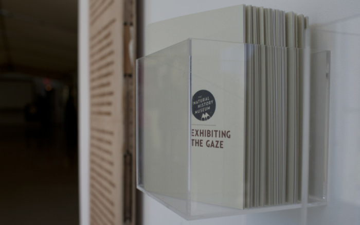 Within the photographs one could see museum goers reflected in the display cases’ glass, illuminating the ways visitors are both within the displays and exterior to them–raising questions about the role the visitors play in nature and culture. A free booklet essay entitled Exhibiting the Gaze accompanied the exhibition and explored the history of the politics of display in museum exhibitions and World’s Fairs.