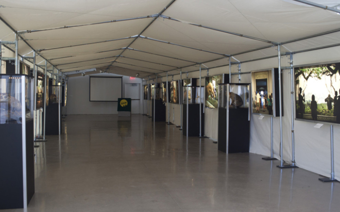We constructed a 1000 square foot tent inspired by infrastructure used in archeology expeditions and mobile disaster response scenarios. Custom-built plinths showcased taxidermic animal specimens, and 14 light boxes featured photographs taken at 5 natural history museums across the Eastern seaboard. The photographs depicted museum visitors engaging with dioramas and nature displays—functioning as a backdrop that reflected an anthropological perspective on museums and their exhibits.