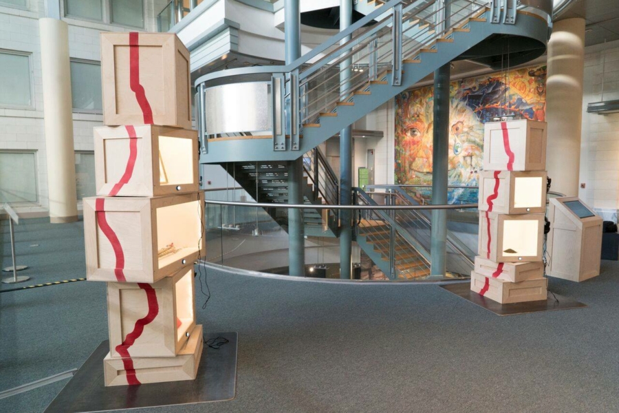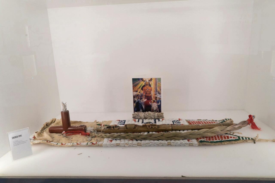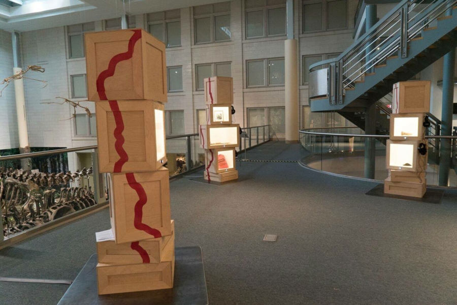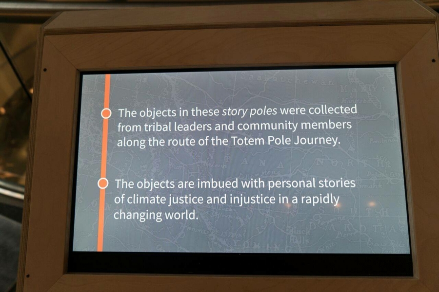 In this exhibition, the totem pole enters a museum for the first time, where it has been paired with a collection of artifacts collected along the route of the Totem Pole Journey. Charged with the stories of resilience they have picked up on their journey across the country, they connect the museum—and the museum public—to the living universe in which they are enmeshed.