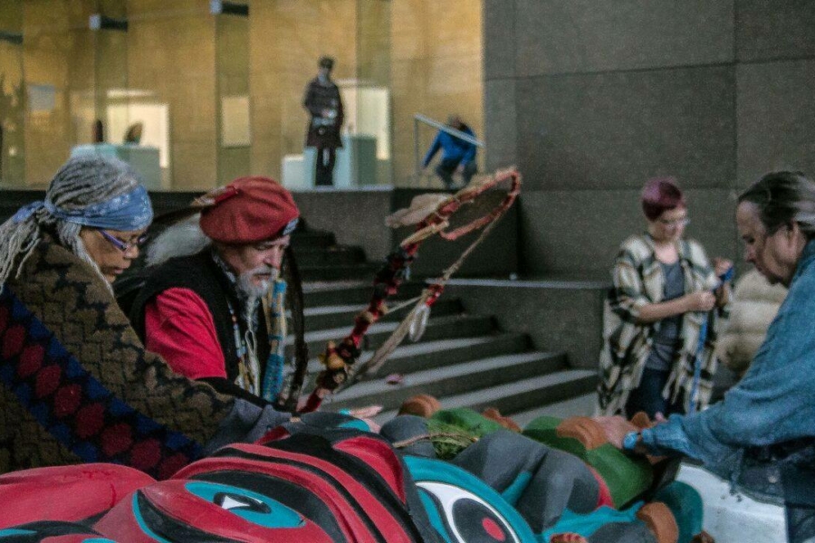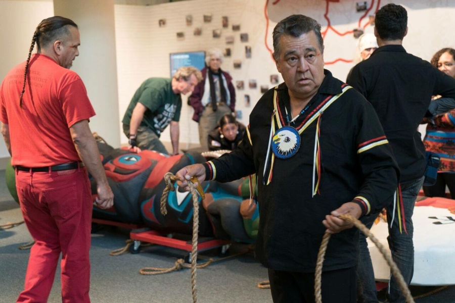 Acclaimed master carver Jewell Praying Wolf James (Lummi Nation) and Doug James (Lummi Nation) of the House of Tears Carvers will take part in a totem pole blessing ceremony led by Faith Spotted Eagle (Yankton Sioux), marking the openings of the ICOM NatHist conference Museums in the Age of Humanity and the new exhibition Kwel’ Hoy: We Draw the Line.