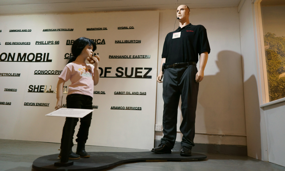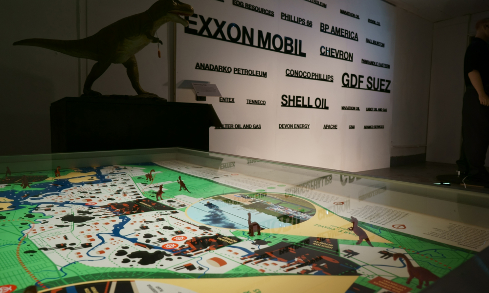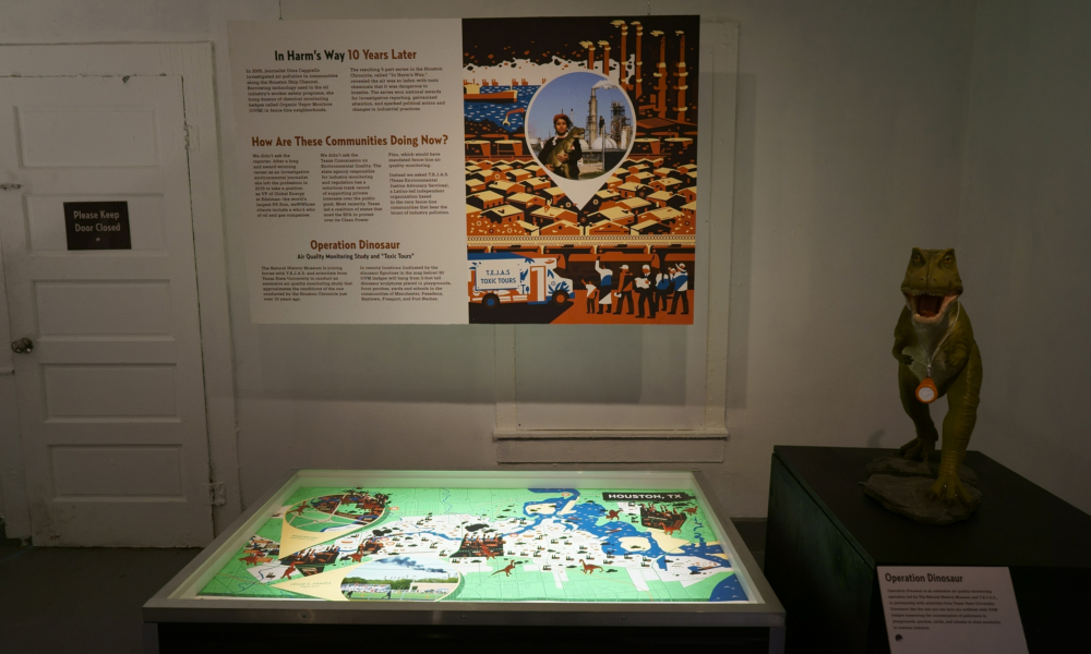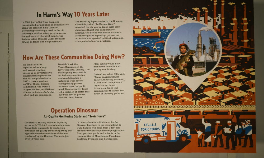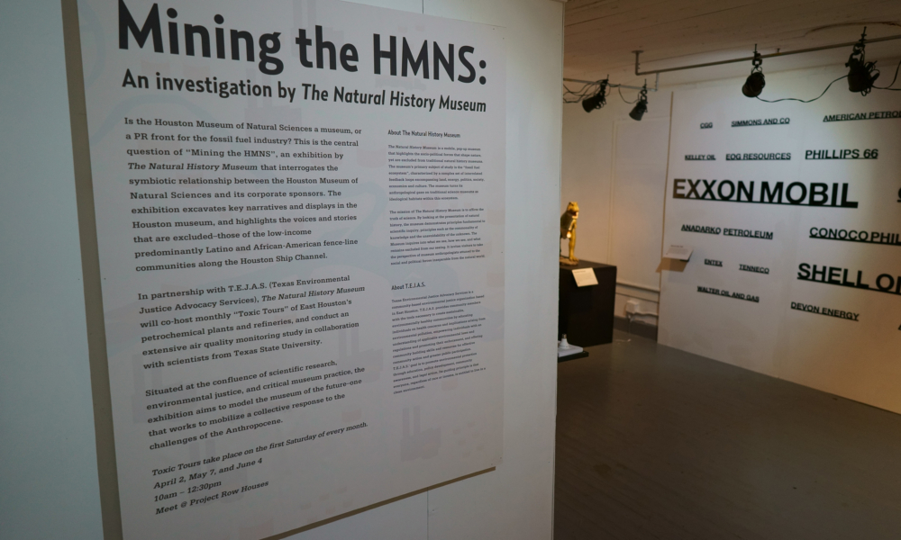 Is the Houston Museum of Natural Sciences a museum, or a PR front for the fossil fuel industry? This was the central question of Mining the HMNS, an exhibition by The Natural History Museum that interrogated the symbiotic relationship between the Houston Museum of Natural Sciences and its corporate sponsors. The exhibition excavated key narratives and displays in the Houston museum, and highlighted the voices and stories that are excluded–those of the low-income predominantly Latino and African-American fence-line communities along the Houston Ship Channel.