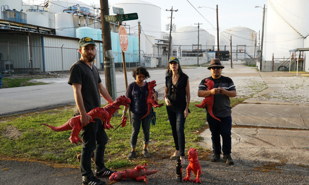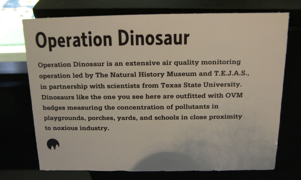 Over the months while the exhibition was up, we collaborated with local environmental justice group T.E.J.A.S. and scientists from Texas Southern University on a series of monthly “toxic tours” and a citizen science air quality monitoring study in the neighborhoods abutting the world’s largest petrochemical hub. Dubbed “Operation Dinosaur”, it approximated the conditions of a landmark study conducted by the Houston Chronicle a little over 10 years ago which revealed high concentrations of several cancer-causing chemicals in the air of East Houston’s fence-line communities.