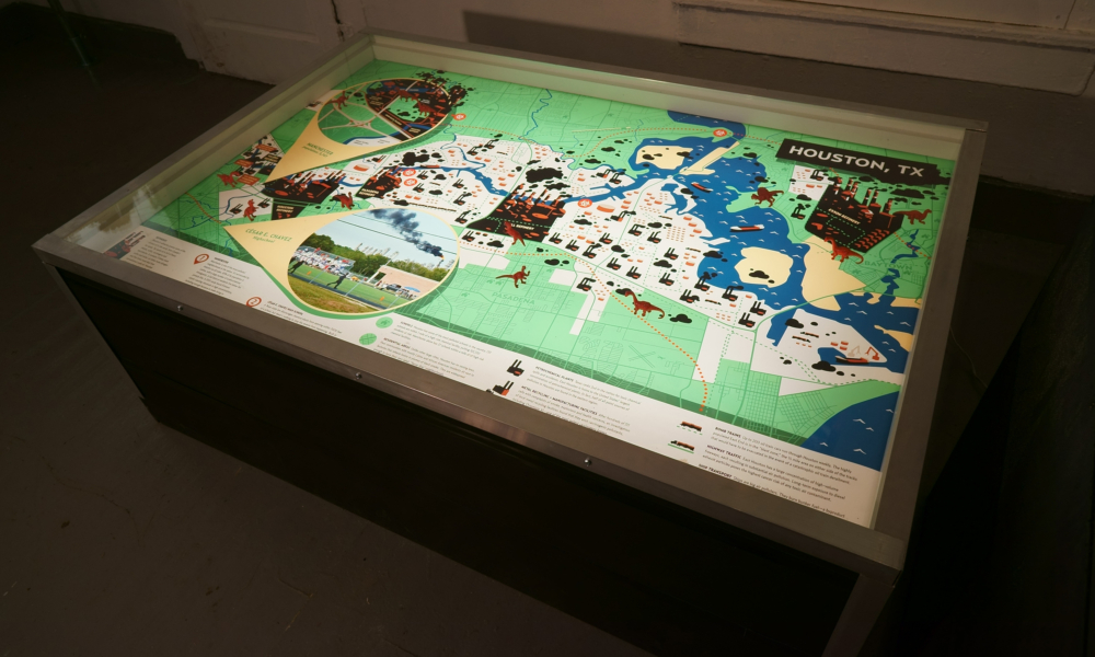 In partnership with T.E.J.A.S. (Texas Environmental Justice Advocacy Services), The Natural History Museum co-hosted monthly “Toxic Tours” of East Houston’s petrochemical plants and refineries, and conducted extensive air quality monitoring tests in collaboration with scientists from Texas State University. Situated at the confluence of scientific research, environmental justice, and critical museum practice, the exhibition aimed to model the museum of the future–one that works to mobilize a collective response to the challenges of the Anthropocene.