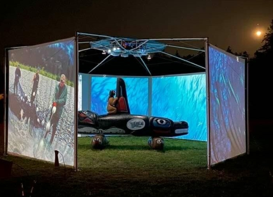 Whale People: Protectors of the Sea features the totem pole and a seven-channel immersive IMAX-style video installation that showcases spectacular underwater footage of the orca, and the voices of Indigenous elders who communicate a message that is at the heart of the totem’s journey: what we do to the waters we do to ourselves.